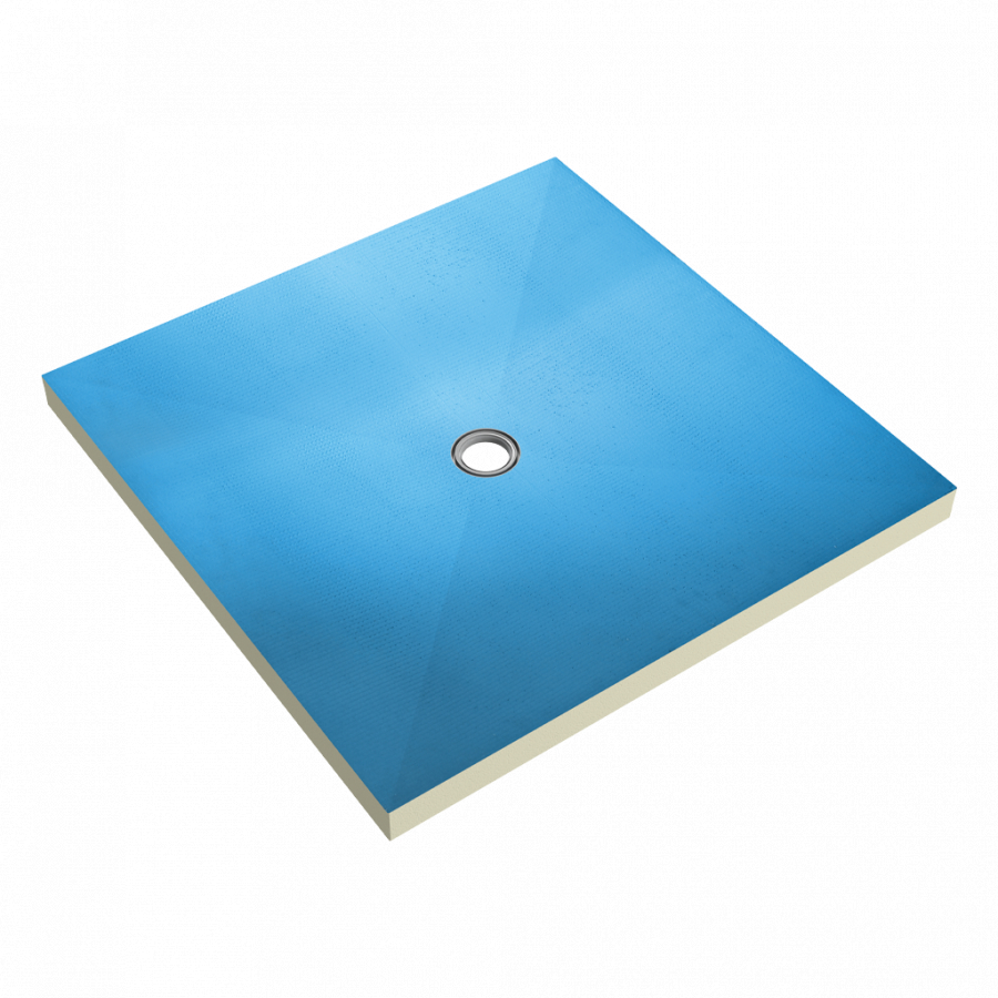 Burkolható szigetelt zuhanytálca pontszerű összefolyóval.