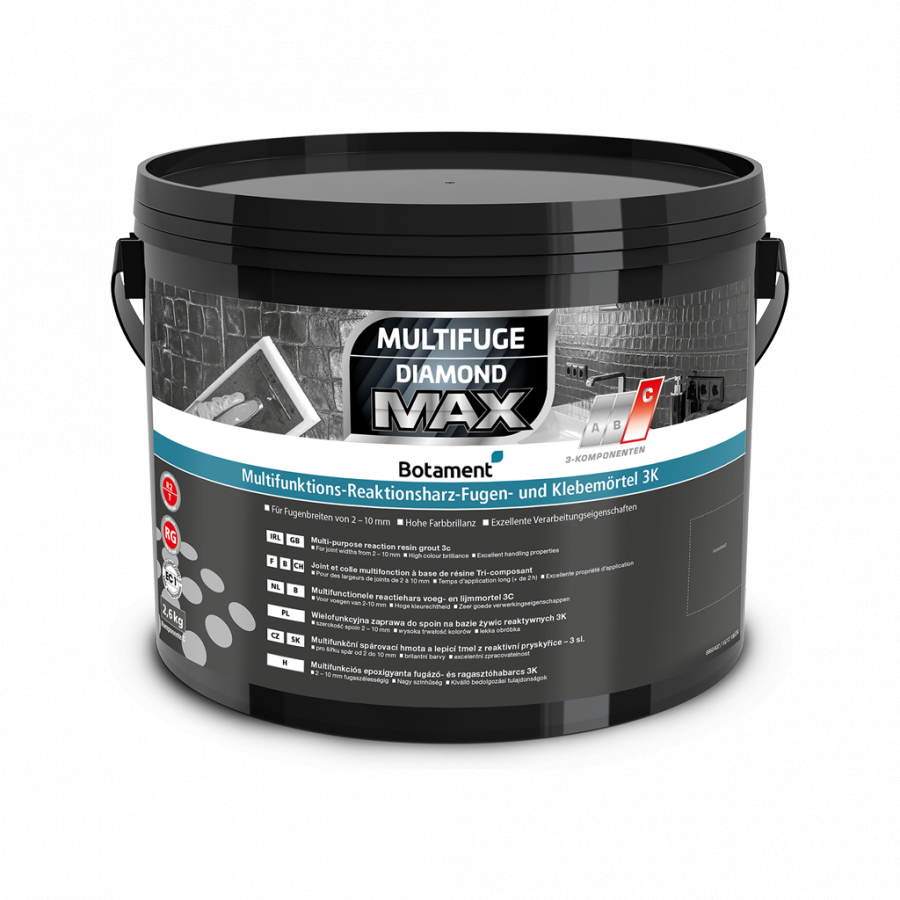 A MULTIFUGE® DIAMOND MAX multifunkcionális 3K epoxi gyanta fugázó és ragasztó habarcs, fal és padlófelületekhez, külső és belső térben.
